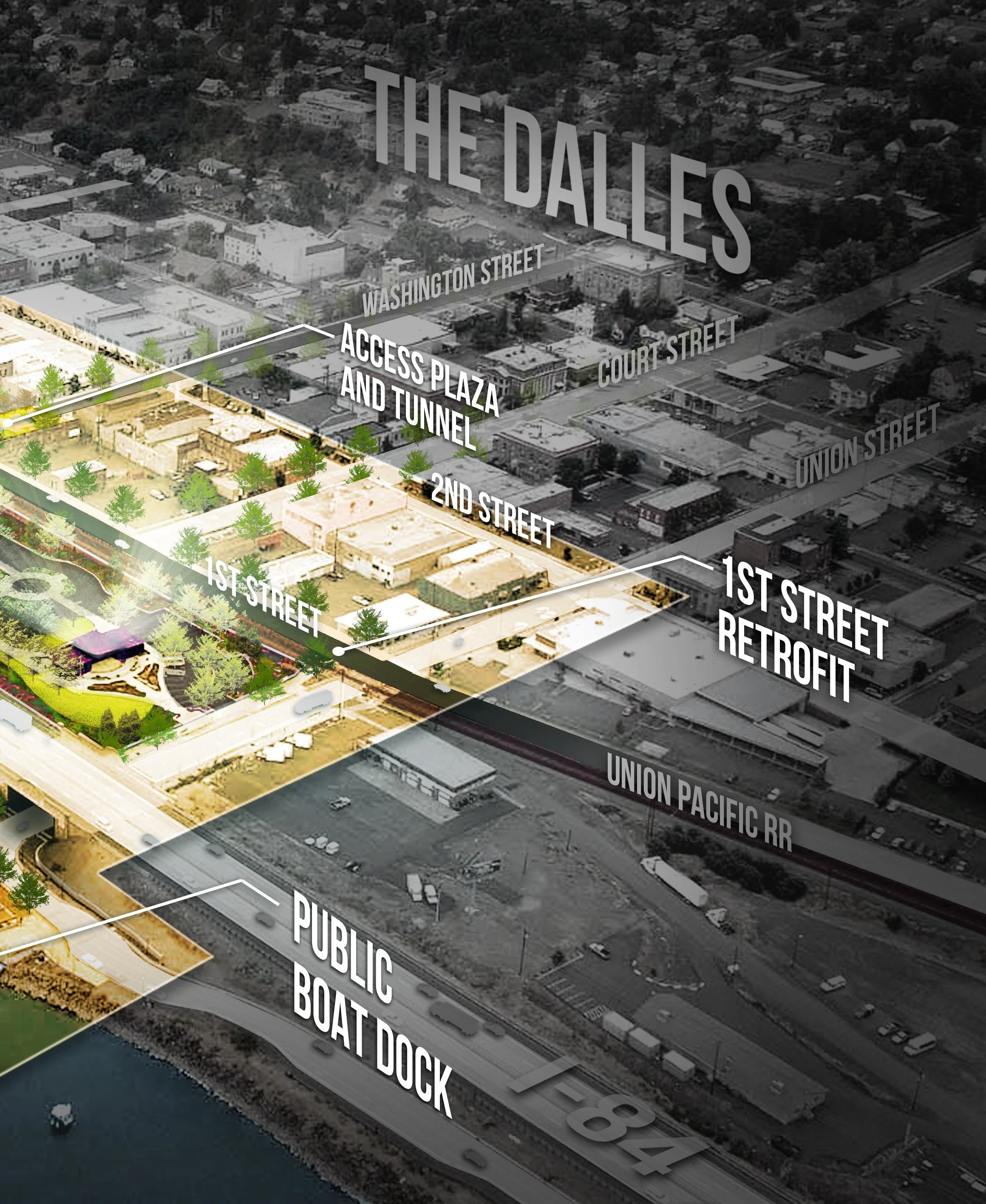 GreenWorks has been working on the Riverfront Connections project in The Dalles over the course of several years, helping to improve connectivity to the waterfront. In Phase II, GreenWorks is working with KPFF on scope that includes streetscape improvements like street furniture, pavement, and street tree plantings.
