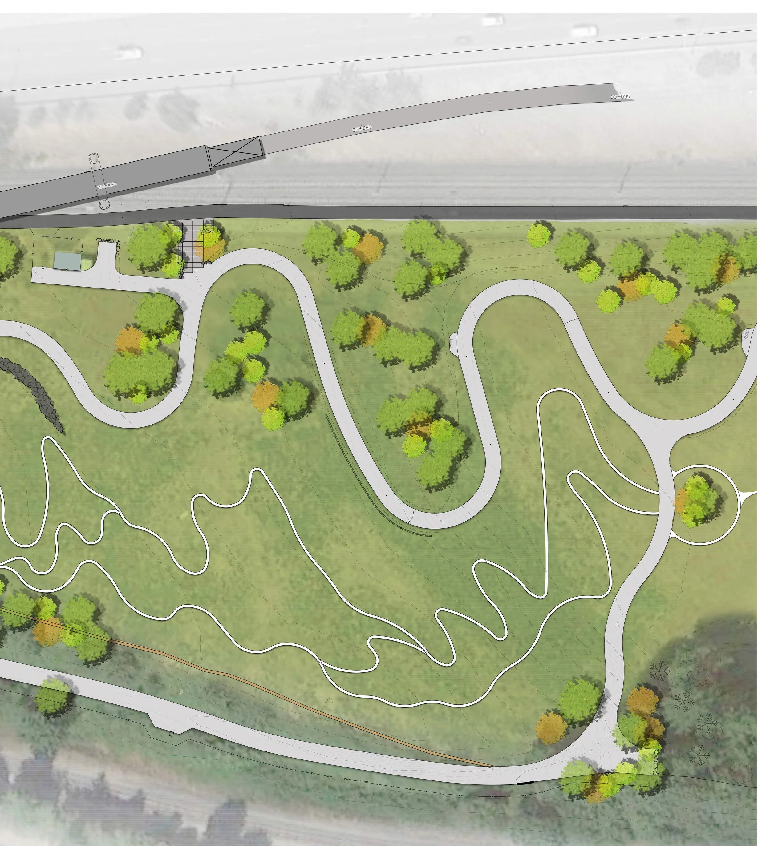 Gateway Green is a 25-acre site located in East Portland at the confluence of two major interstate highways, I-84 and I-205. This previously unused remnant landscape had a host of complicated public access issues that made the prospect of establishing a park on the site challenging. GreenWorks collaborated with local stakeholders to create an overall vision and recreational program for Gateway Green that would improve environmental conditions and restore habitat while providing a regional destination for off-road cycling. As Portland’s first urban bike park, Gateway Green offers singletrack trails, a bike skills area, a gravity area, and a cyclocross course. It also features soft surface trails, paved multi-use trails, ample open space, and a nature-based play area. Sustainable features of the park include the reuse of existing on-site gravel as base rock for new gravel trails, diverse landscape plantings to promote biodiversity and wildlife habitat, and sustainable on-site stormwater management achieved with open vegetated swales.