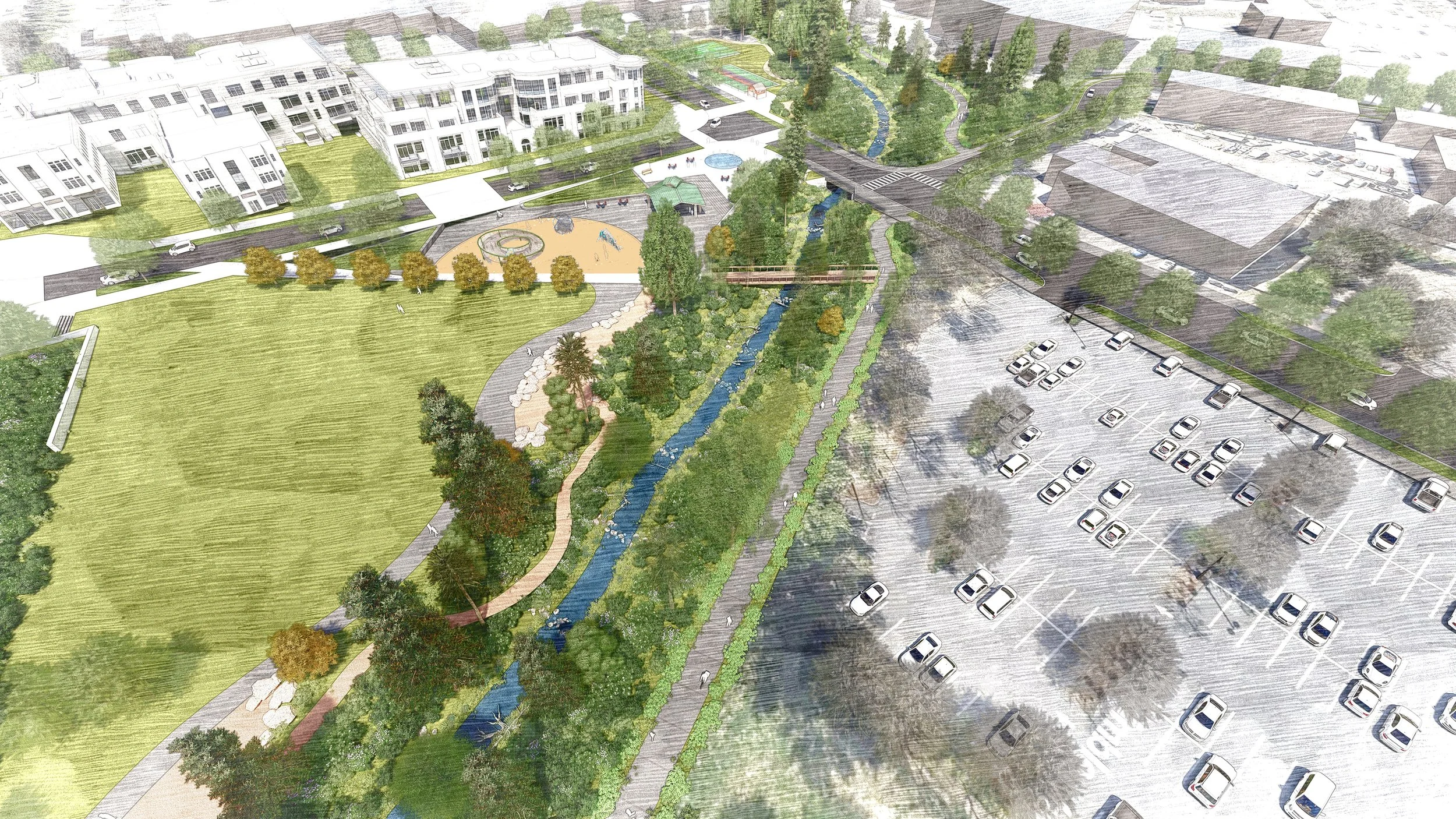 GreenWorks is a subconsultant on the Red Rock Creek Stabilization and Enhancement project for the City of Tigard. This project will enhance the streambed and re-establish Red Rock Creek’s greenway corridor. GreenWorks is assisting the team by creating the restoration planting plans, and tree protection plans. We are also designing a trail along this enhanced corridor to provide much needed access for urban residents to access nature, recreate in safe, pleasant spaces, and add to the active transportation network. Since the project is within the Tigard Triangle, GreenWorks is devising graphics and renderings for public outreach and stakeholders. The photos below show its existing conditions and the project in progress.