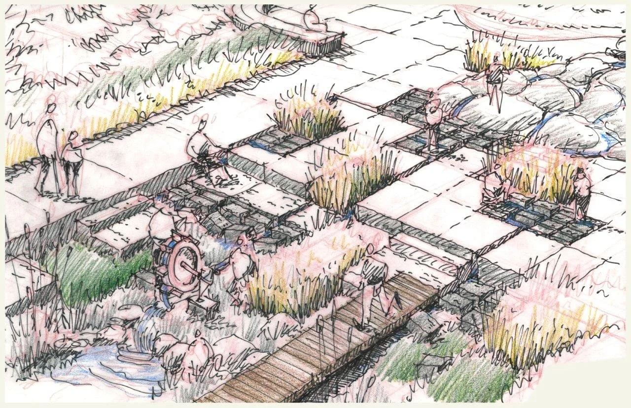 Sustainable features include water conservation, drought-tolerant planting design, efficient irrigation, native or native-adaptive plant material, sustainable stormwater management, incorporation of salvaged concrete re-purposed for water play elements and many salvaged logs for climbing features and custom benches. This project opened in 2014 and is “wildly” popular with children and adults alike. The project was awarded the ASLA Oregon Honor Award.